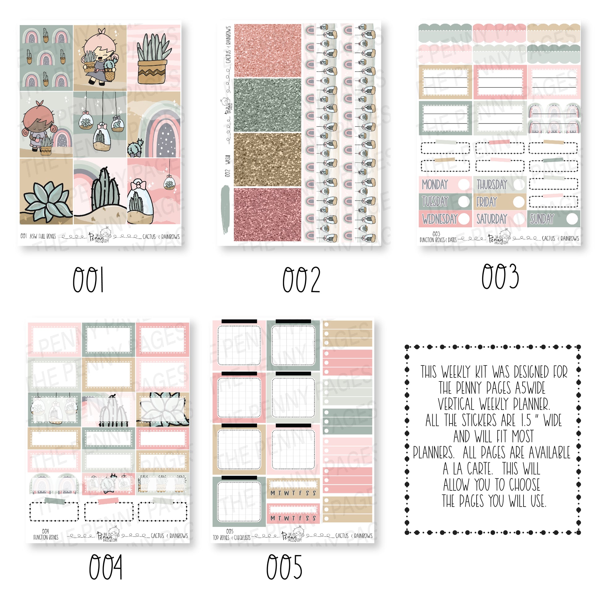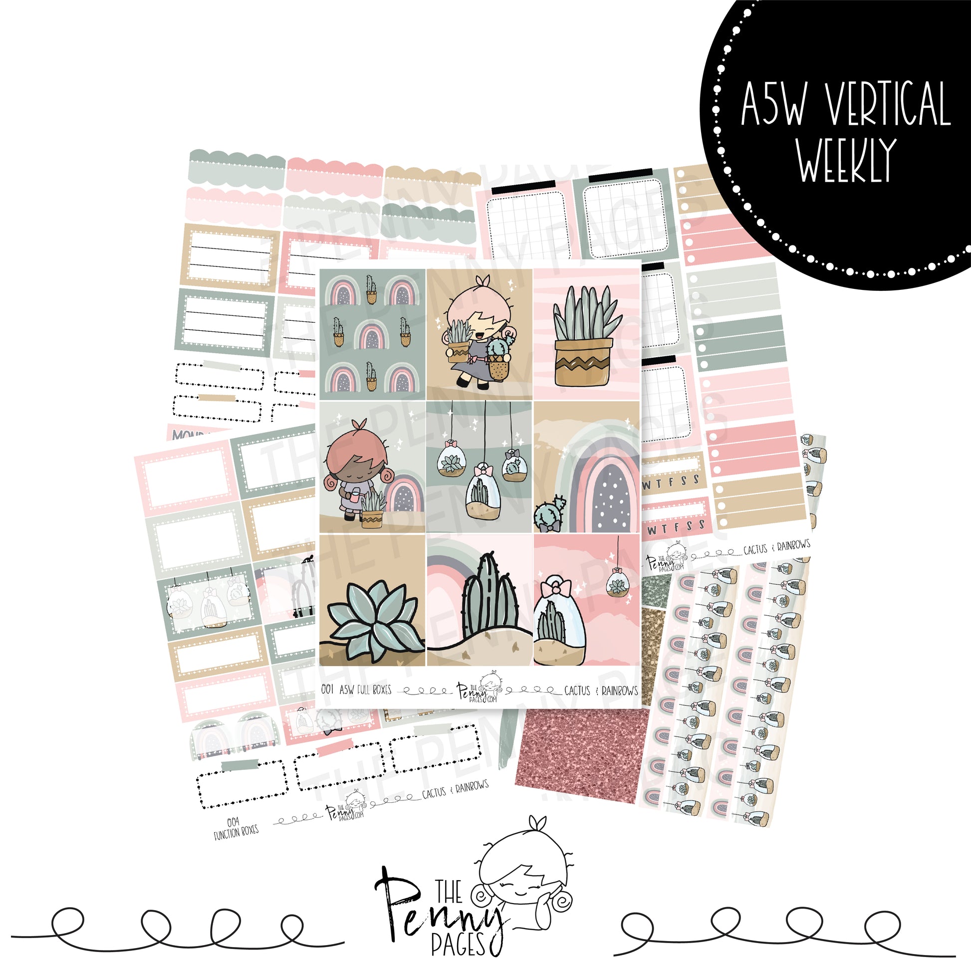 This weekly kit has been created using the Penny Pages A5 wide vertical weekly planner. The stickers all measure 1.5" wide and will fit in most " standard " planners.