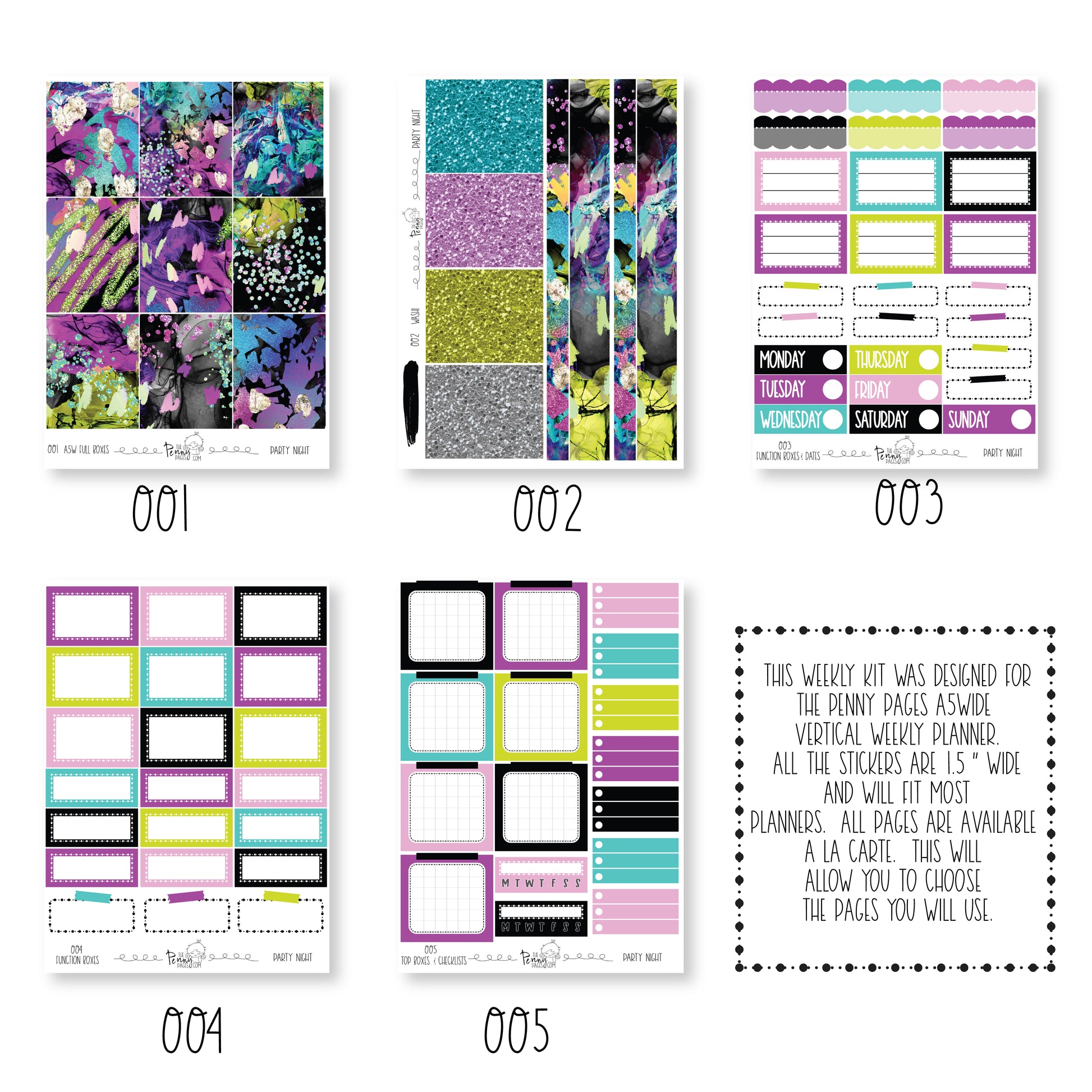 This weekly kit has been created using the Penny Pages A5 wide vertical weekly planner. The stickers all measure 1.5" wide and will fit in most " standard " planners.