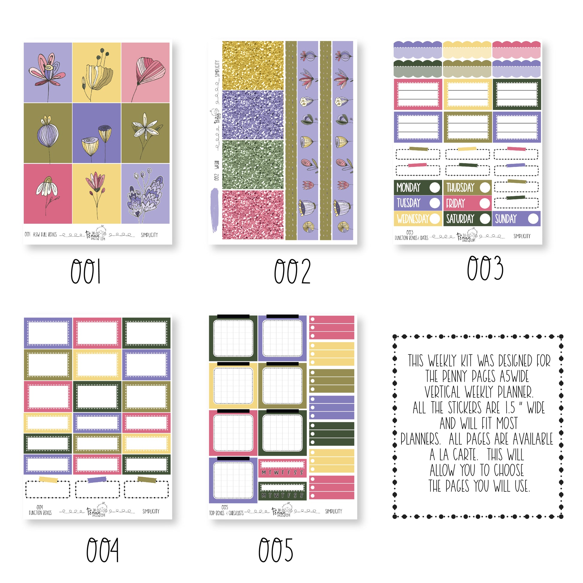 If you would like to purchase sheets a la carte, please look at the photos to see what stickers are found on each sheet.
