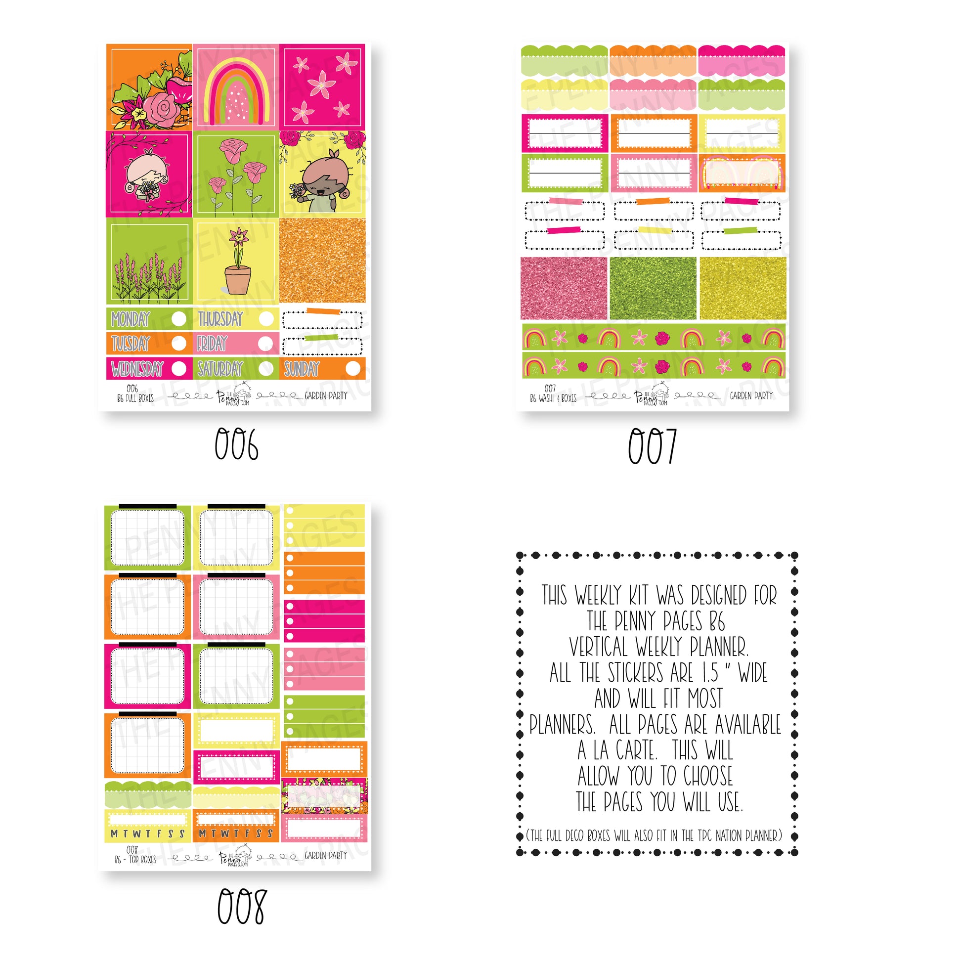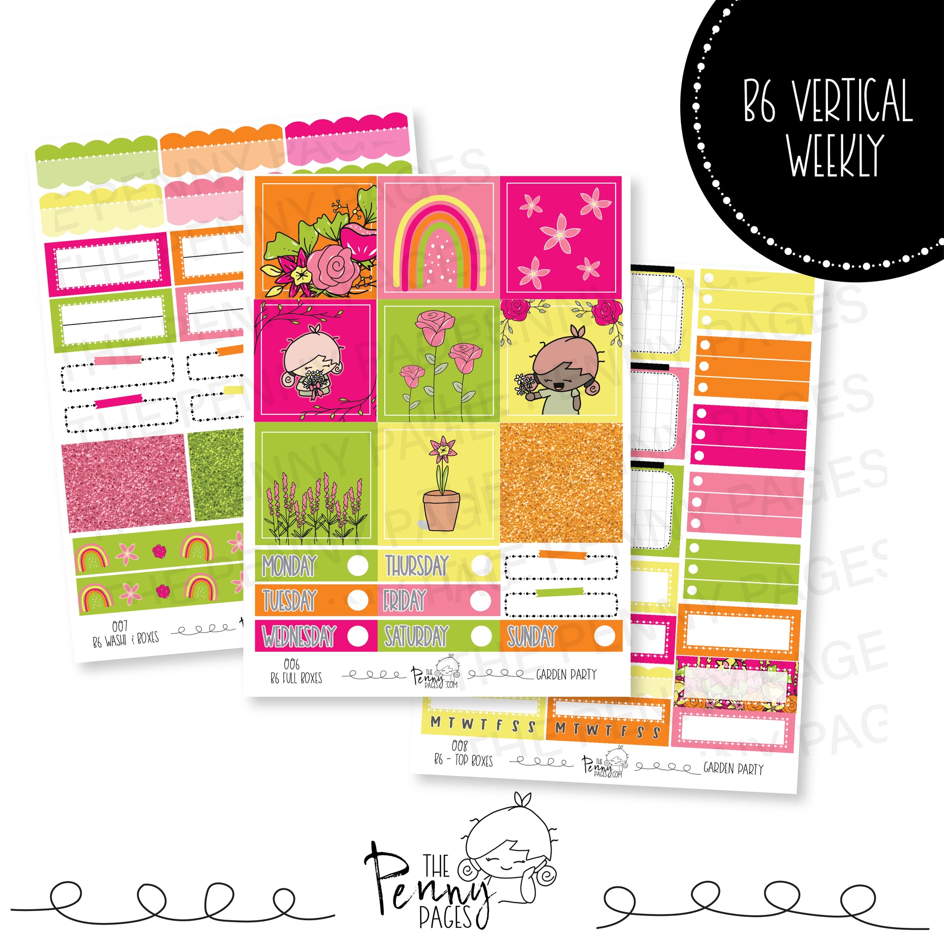 This weekly kit has been created using the Penny Pages B6 vertical weekly planner. The stickers all measure 1.5" wide and will fit in most " standard " planners.