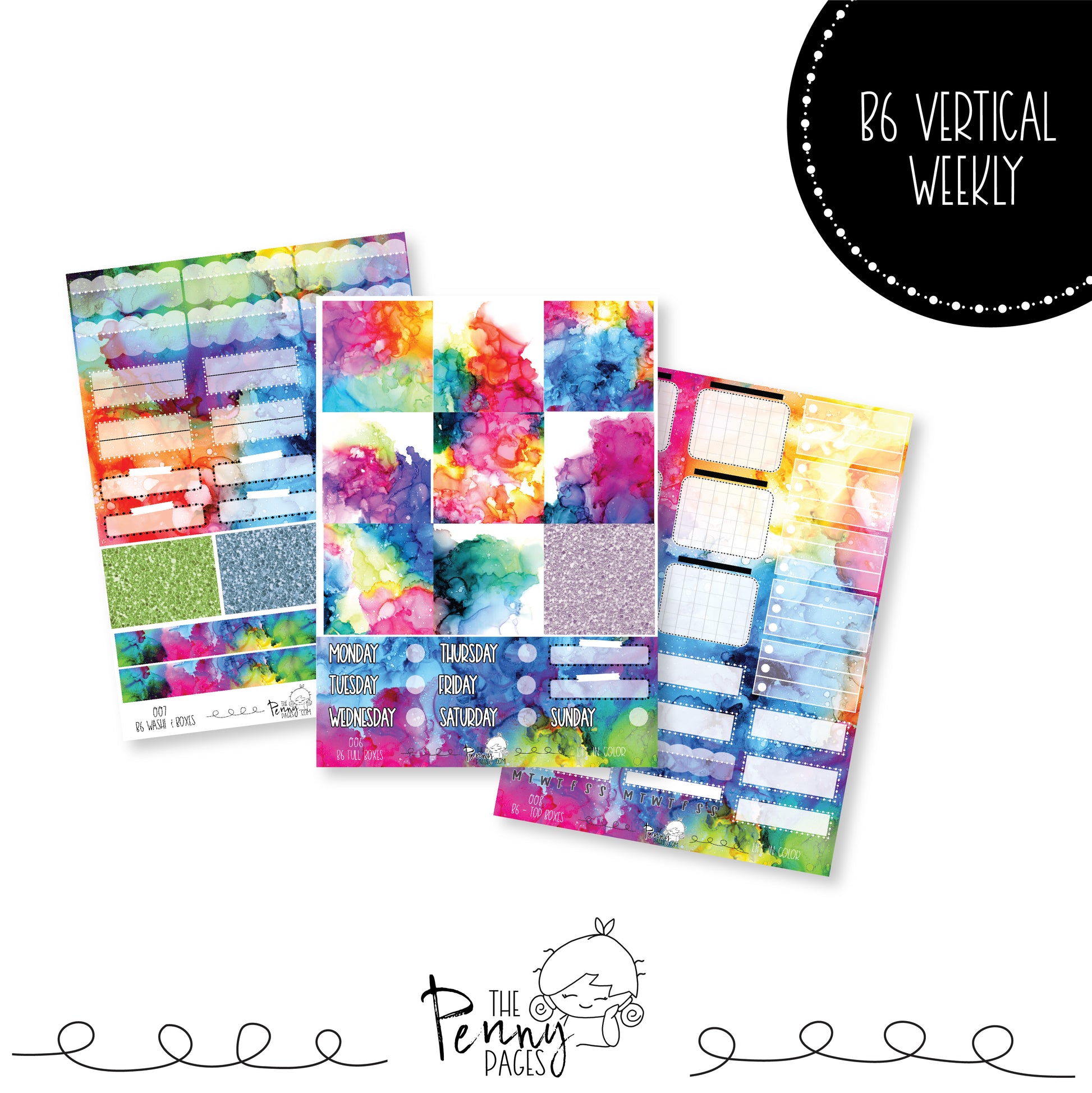 This weekly kit has been created using the Penny Pages B6 vertical weekly planner. The stickers all measure 1.5" wide and will fit in most " standard " planners.