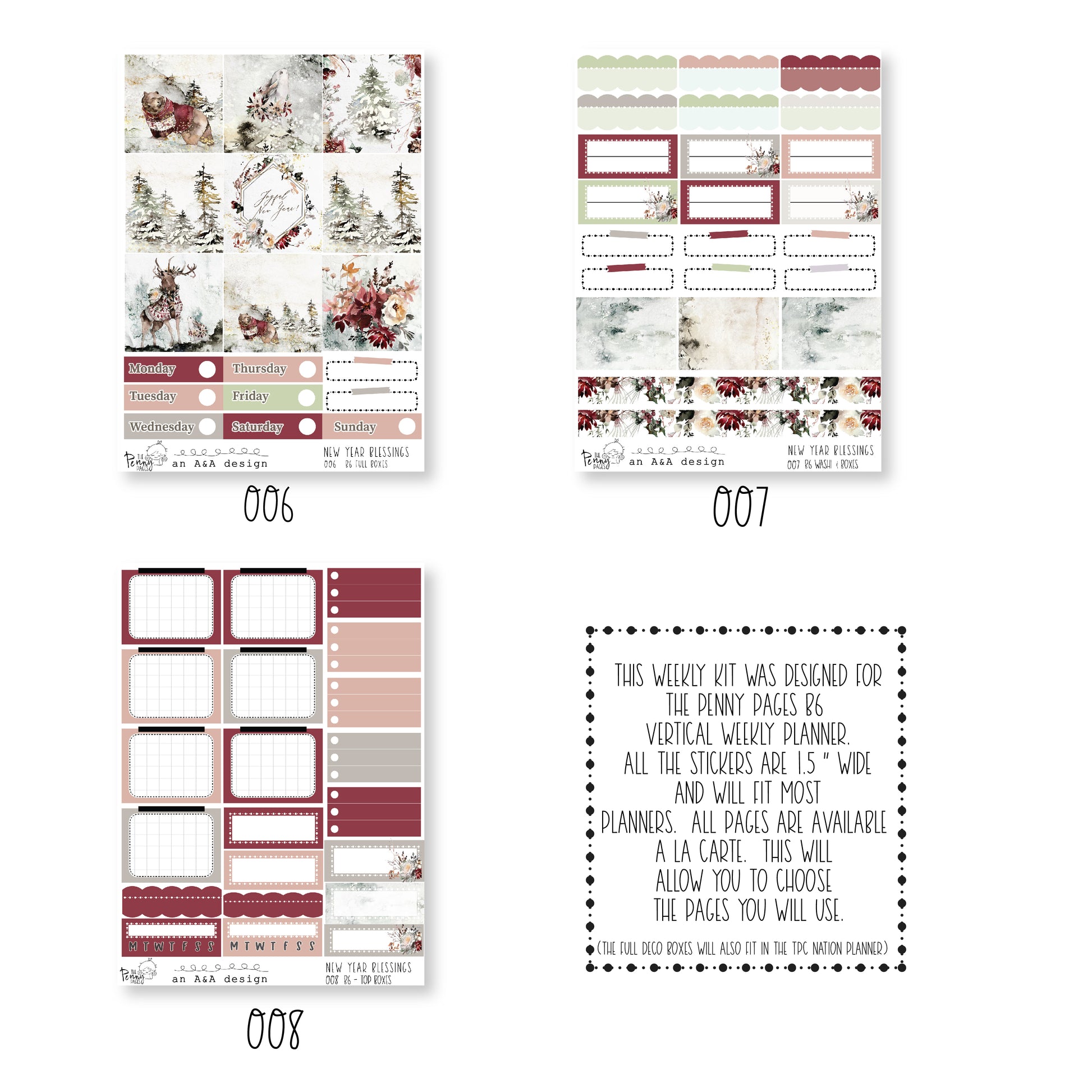If you would like to purchase sheets a la carte, please look at the photos to see what stickers are found on each sheet.