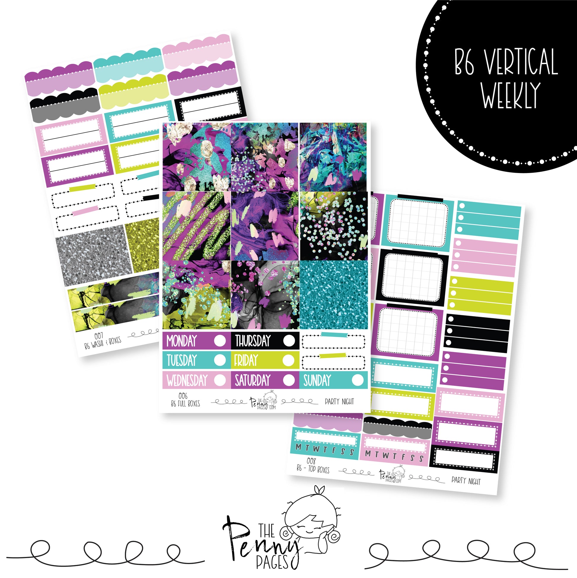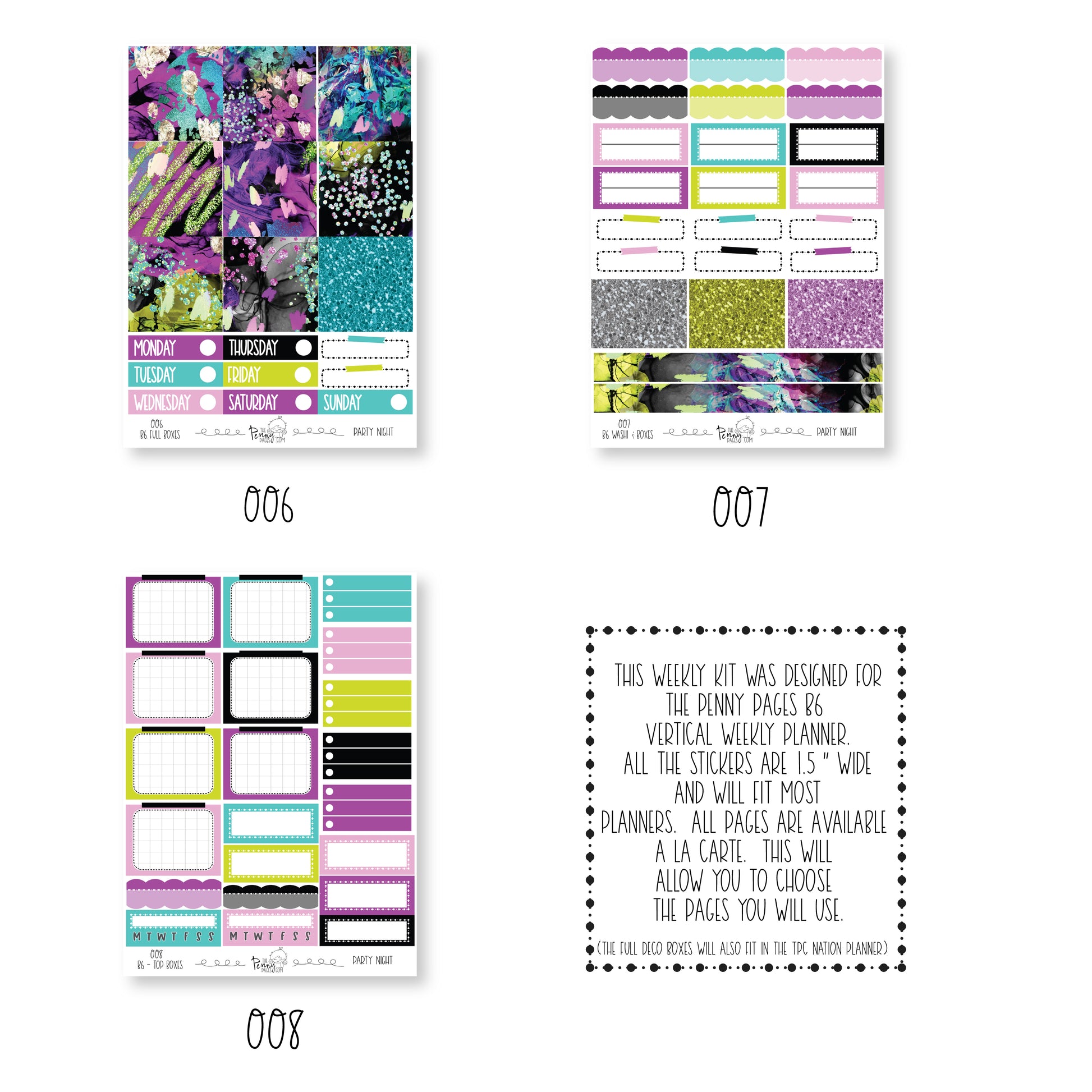 This weekly kit has been created using the Penny Pages B6 vertical weekly planner. The stickers all measure 1.5" wide and will fit in most " standard " planners.