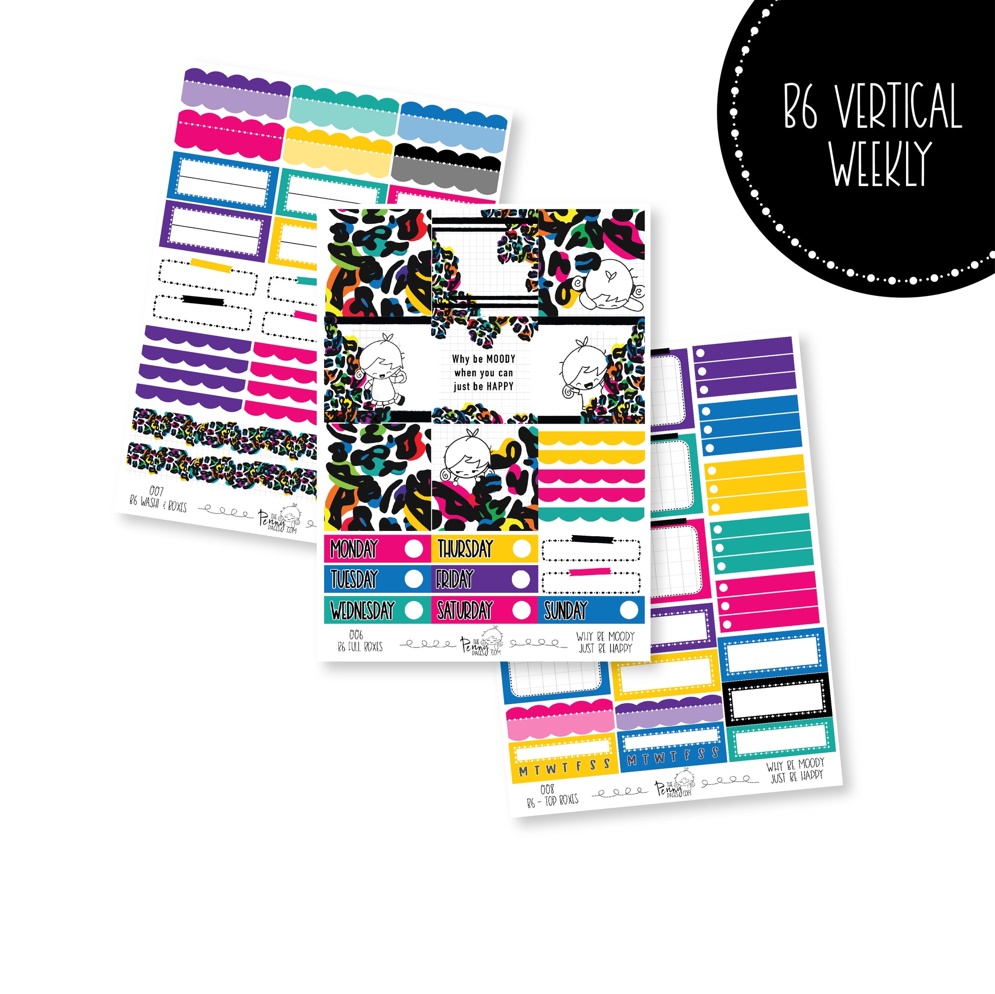 This weekly kit has been created using the Penny Pages B6 vertical weekly planner. The stickers all measure 1.5" wide and will fit in most " standard " planners.