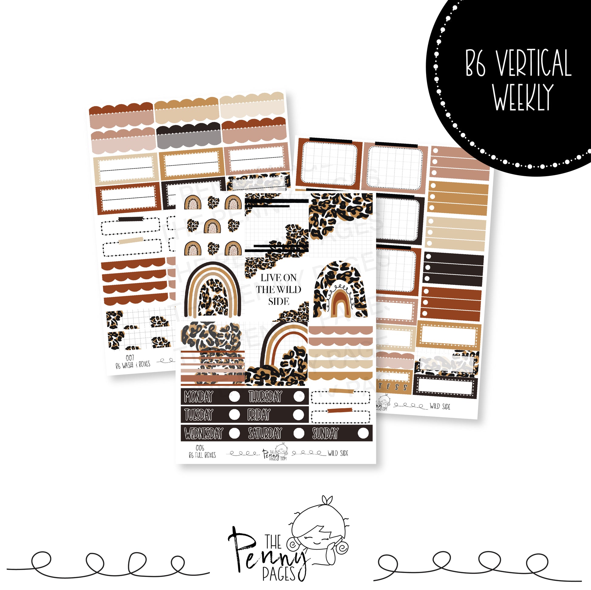This weekly kit has been created using the Penny Pages B6 vertical weekly planner. The stickers all measure 1.5" wide and will fit in most " standard " planners.