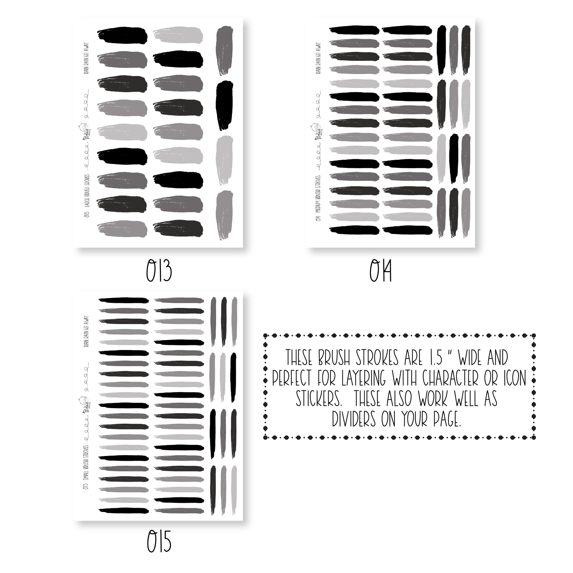 Choose between 3 sizes of brush strokes to add layers or divides in your planner!