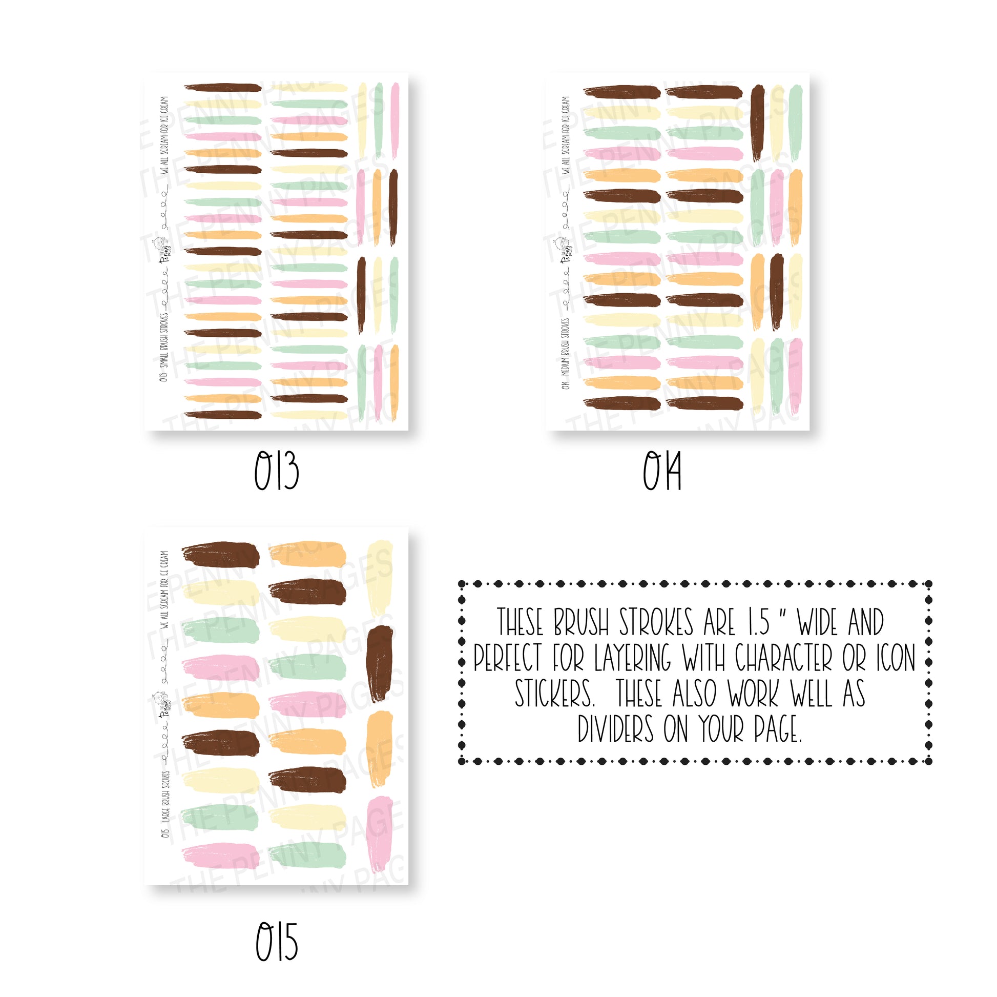 Choose between 3 sizes of brush strokes to add layers or divides in your planner!