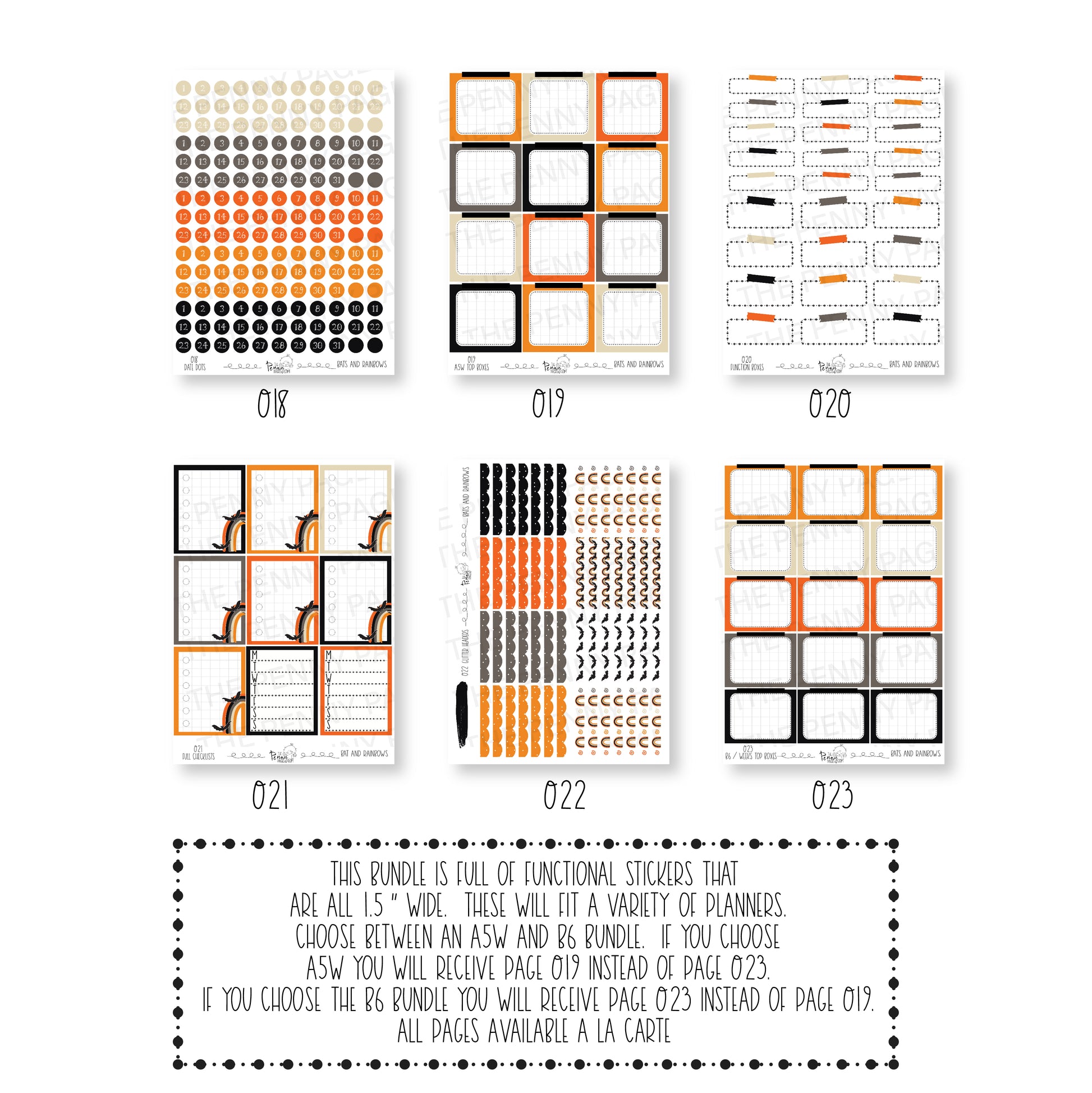 This bundle is full of functional stickers that are all 1.5” wide. These will fit a variety of planners.