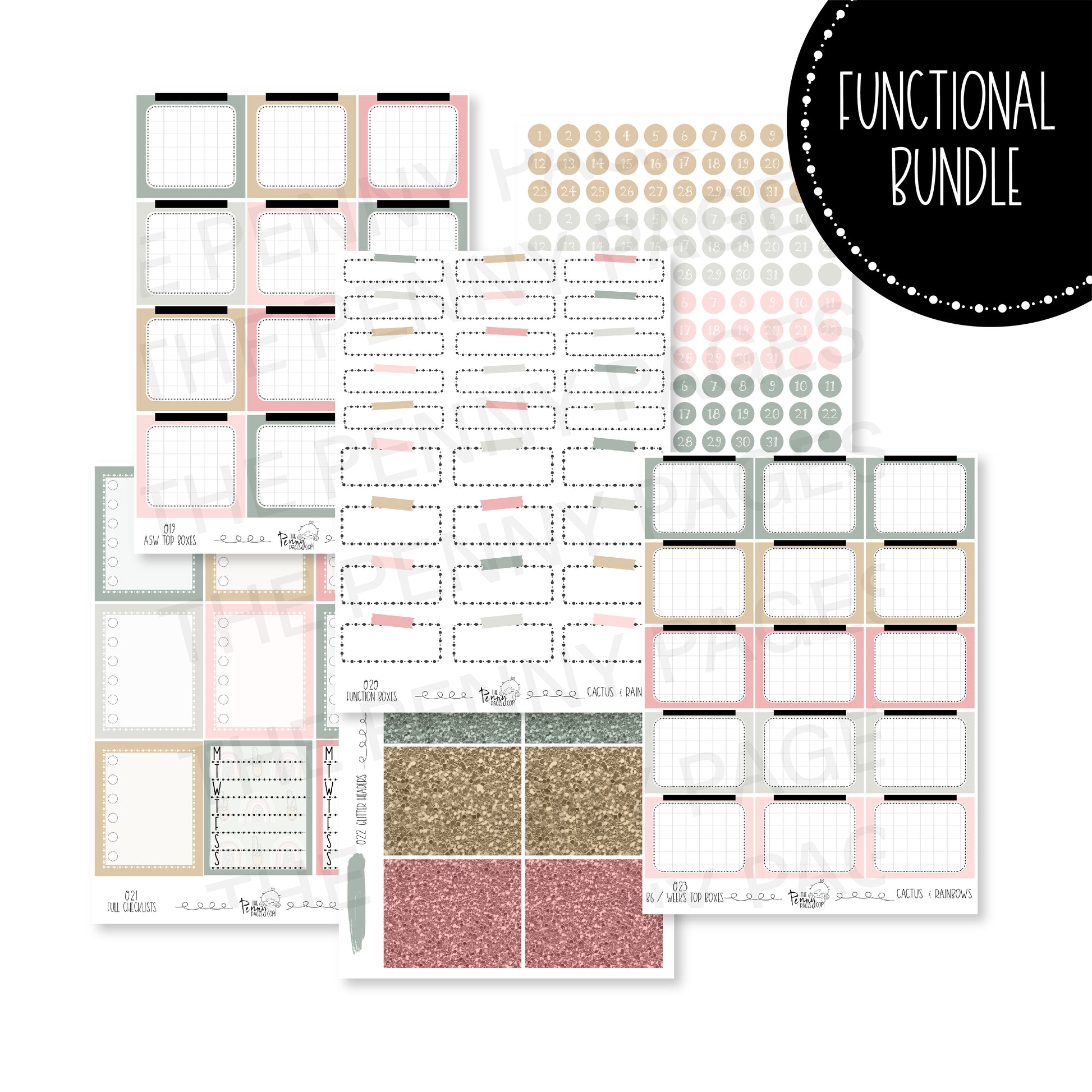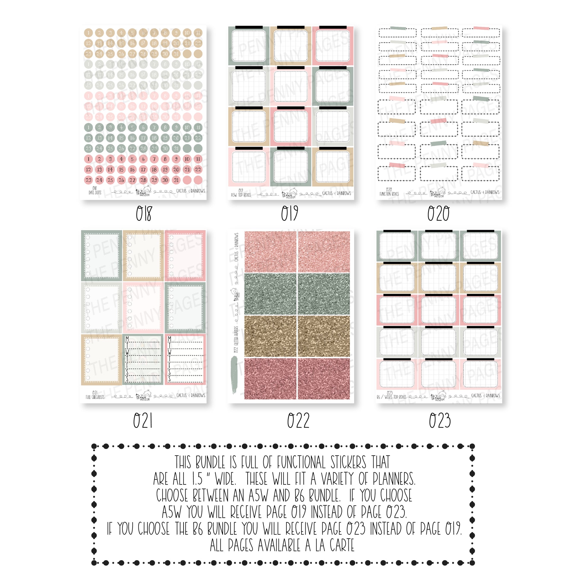This bundle is full of functional stickers that are all 1.5” wide. These will fit a variety of planners.