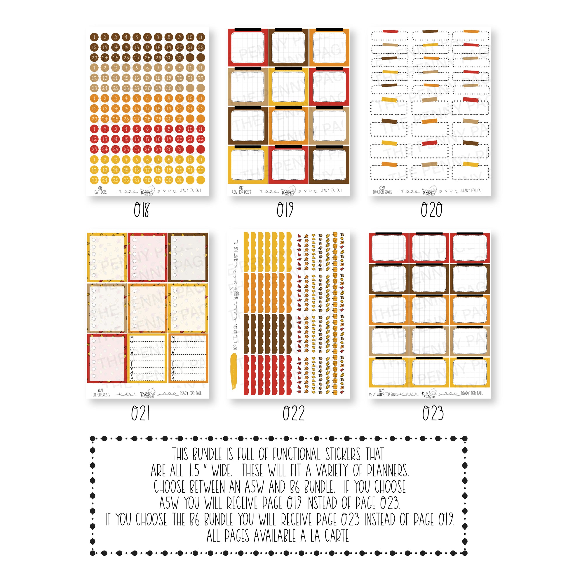This bundle is full of functional stickers that are all 1.5” wide. These will fit a variety of planners.