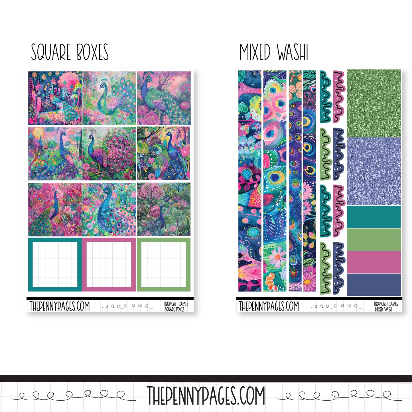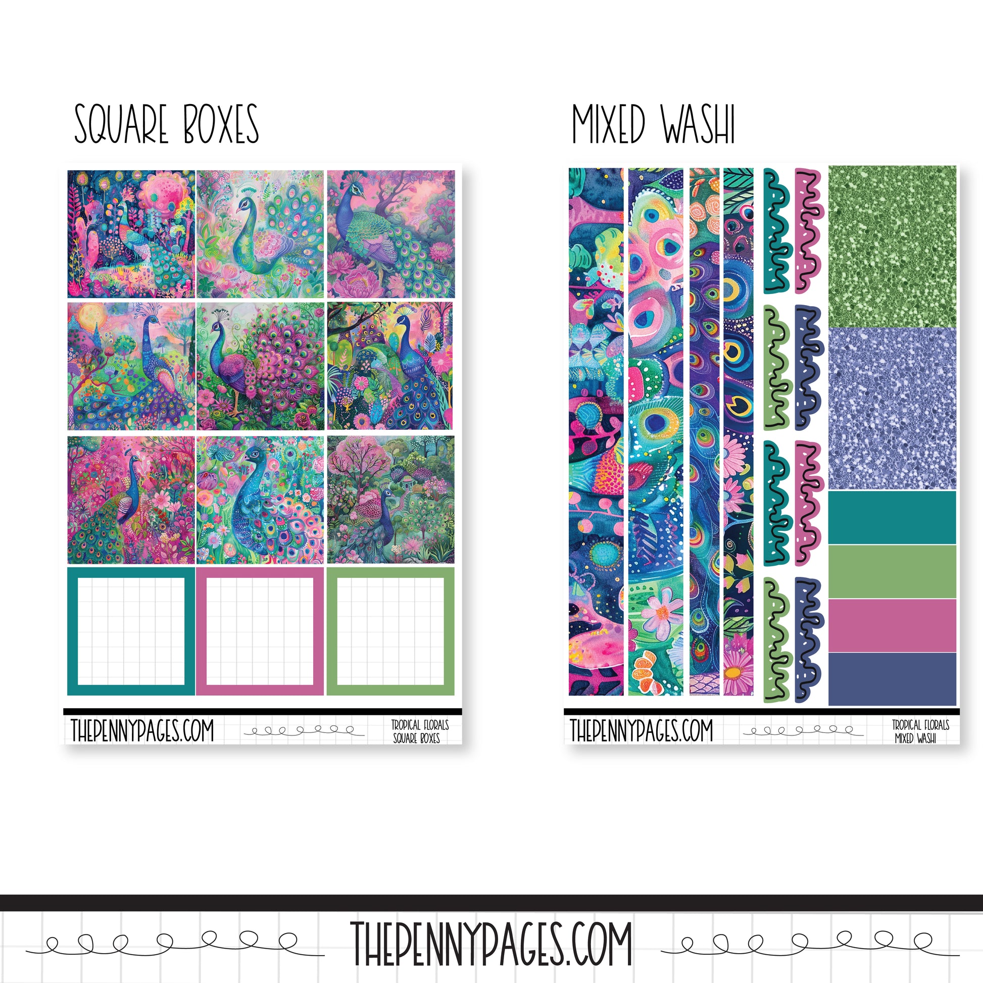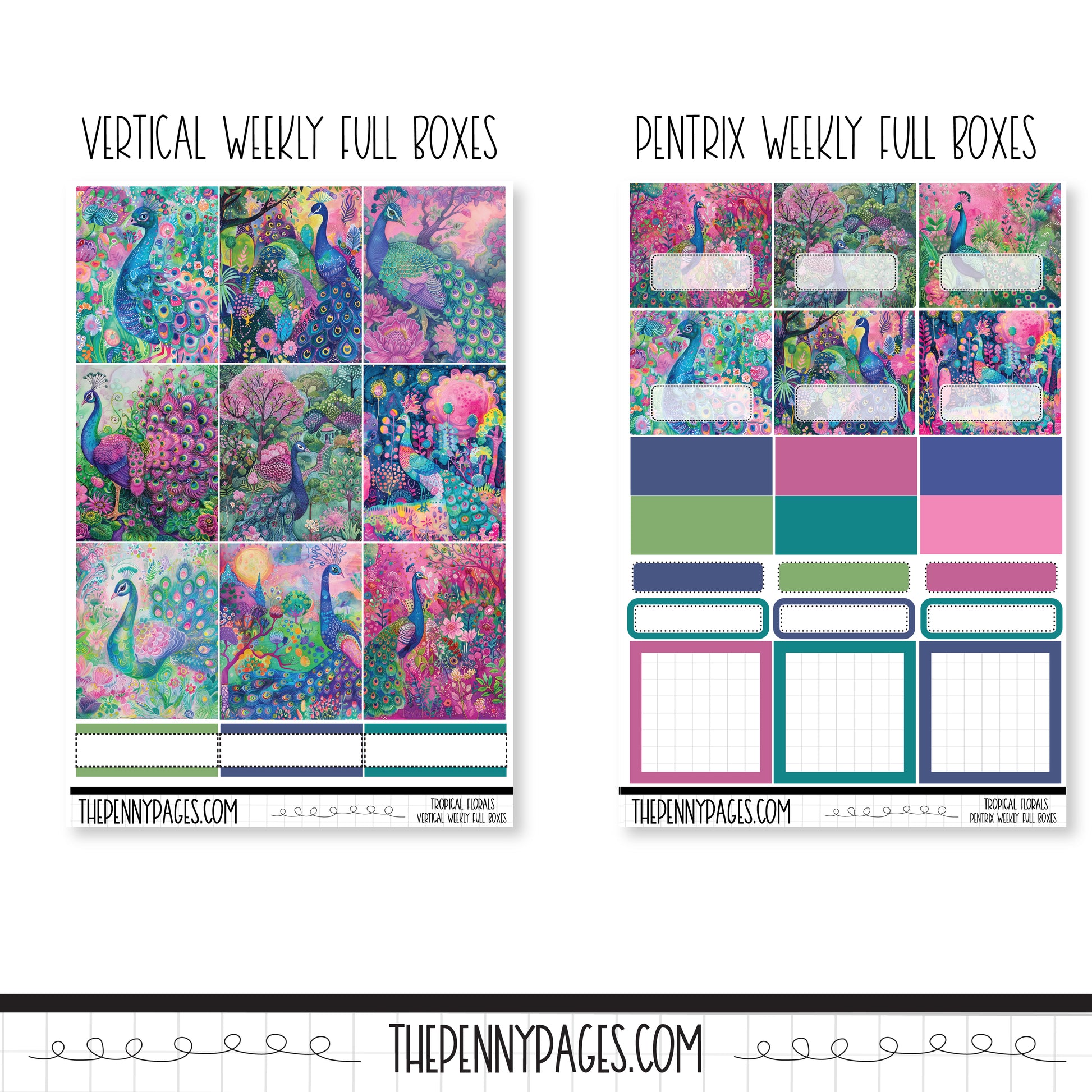The square box full sheet are perfect for our B6 planners or our daily planners. The rectangle full boxes will fit perfectly in our A5 Wide vertical weekly planners or in our Daily planners.