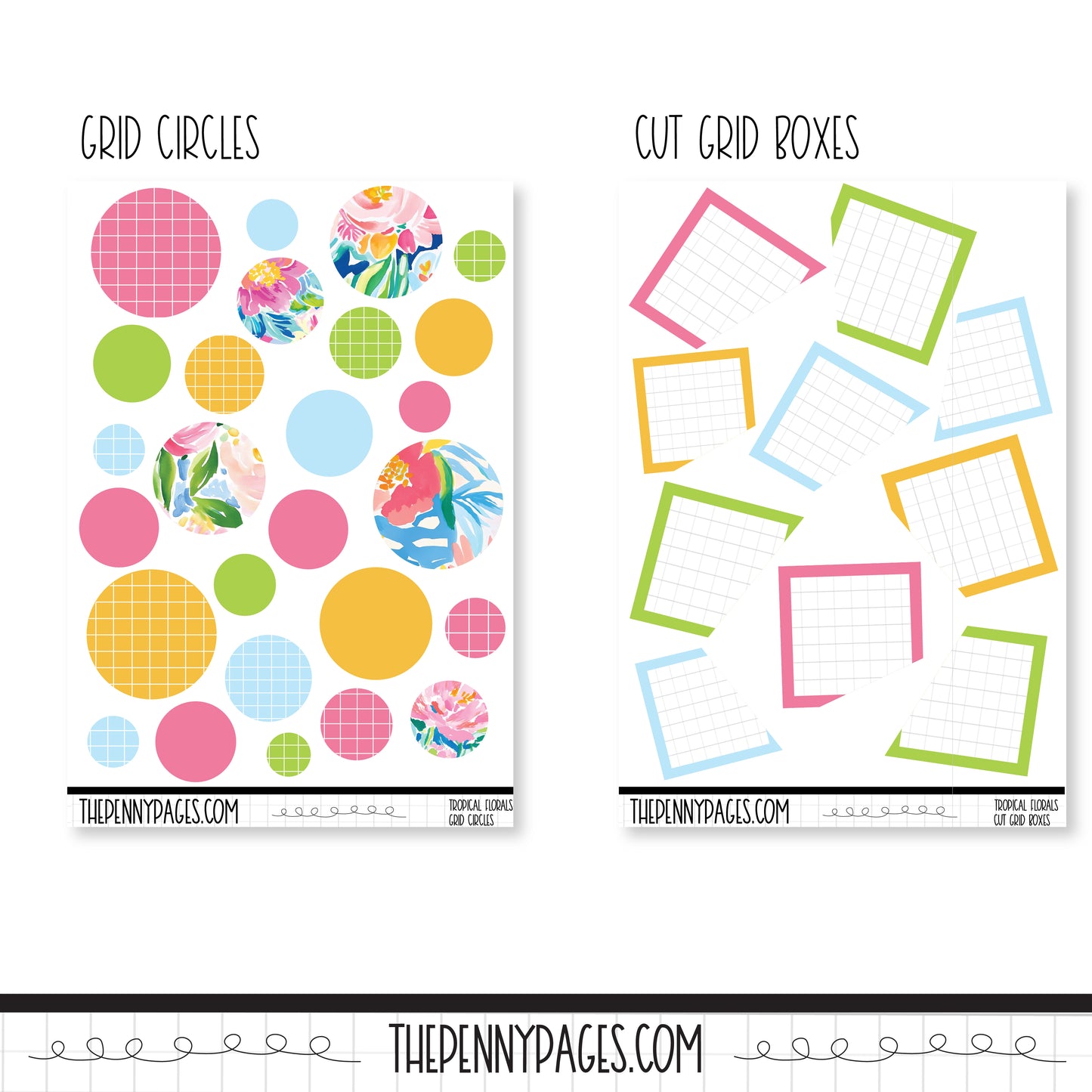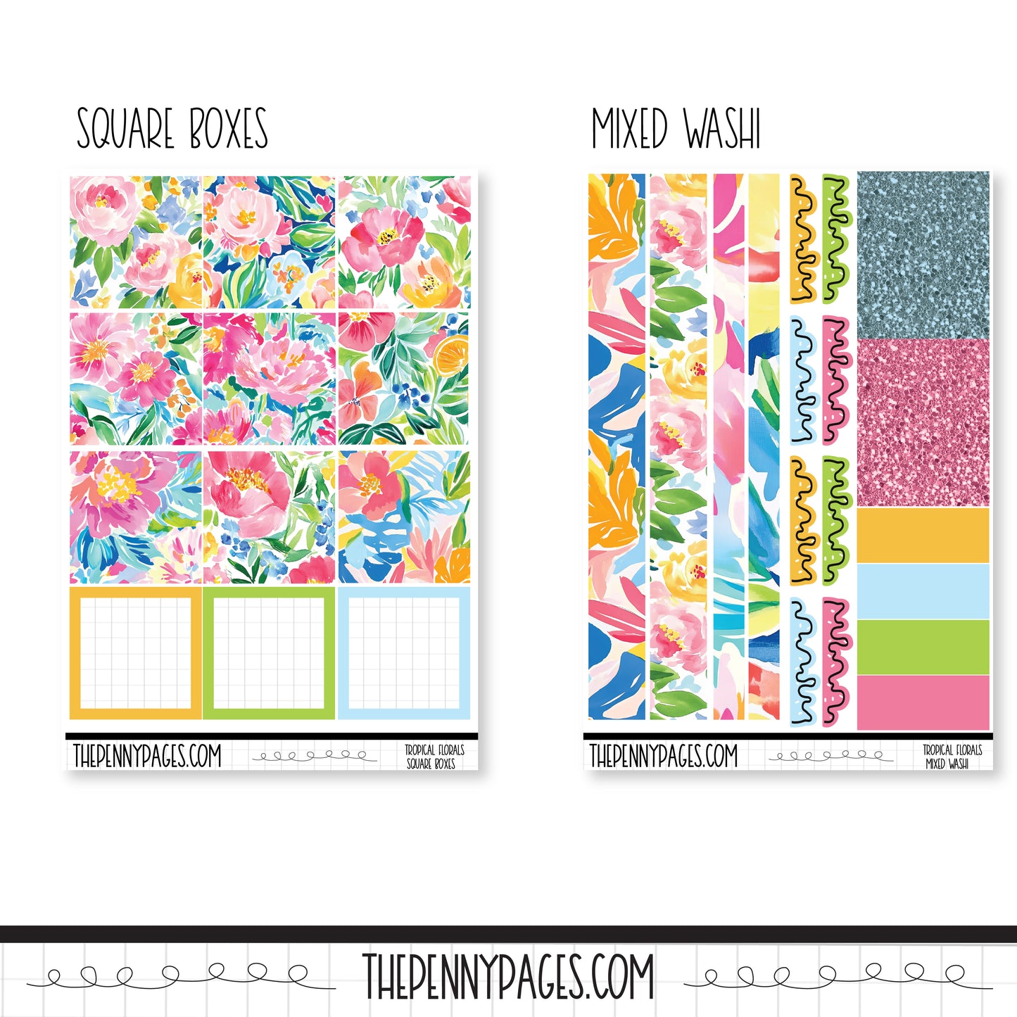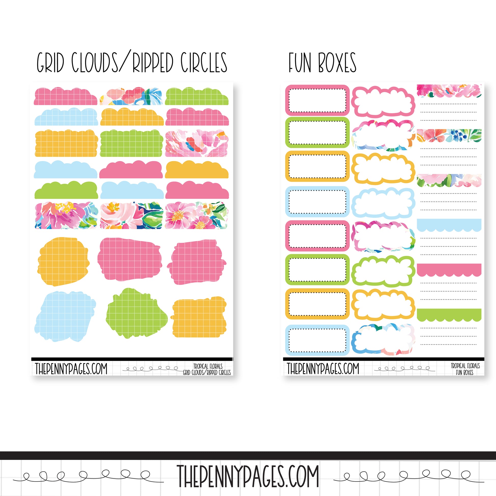 The square box full sheet are perfect for our B6 planners or our daily planners. The rectangle full boxes will fit perfectly in our A5 Wide vertical weekly planners or in our Daily planners.