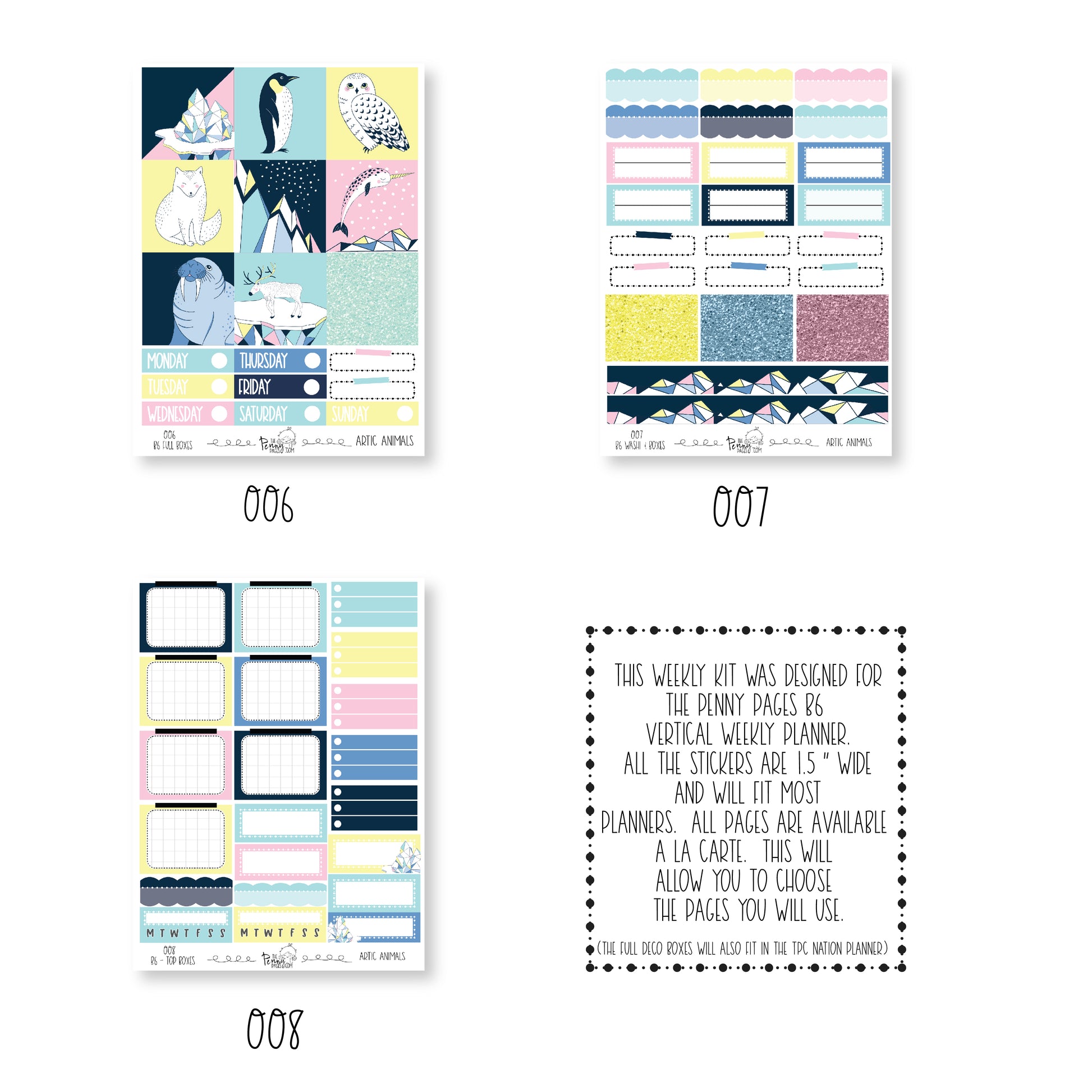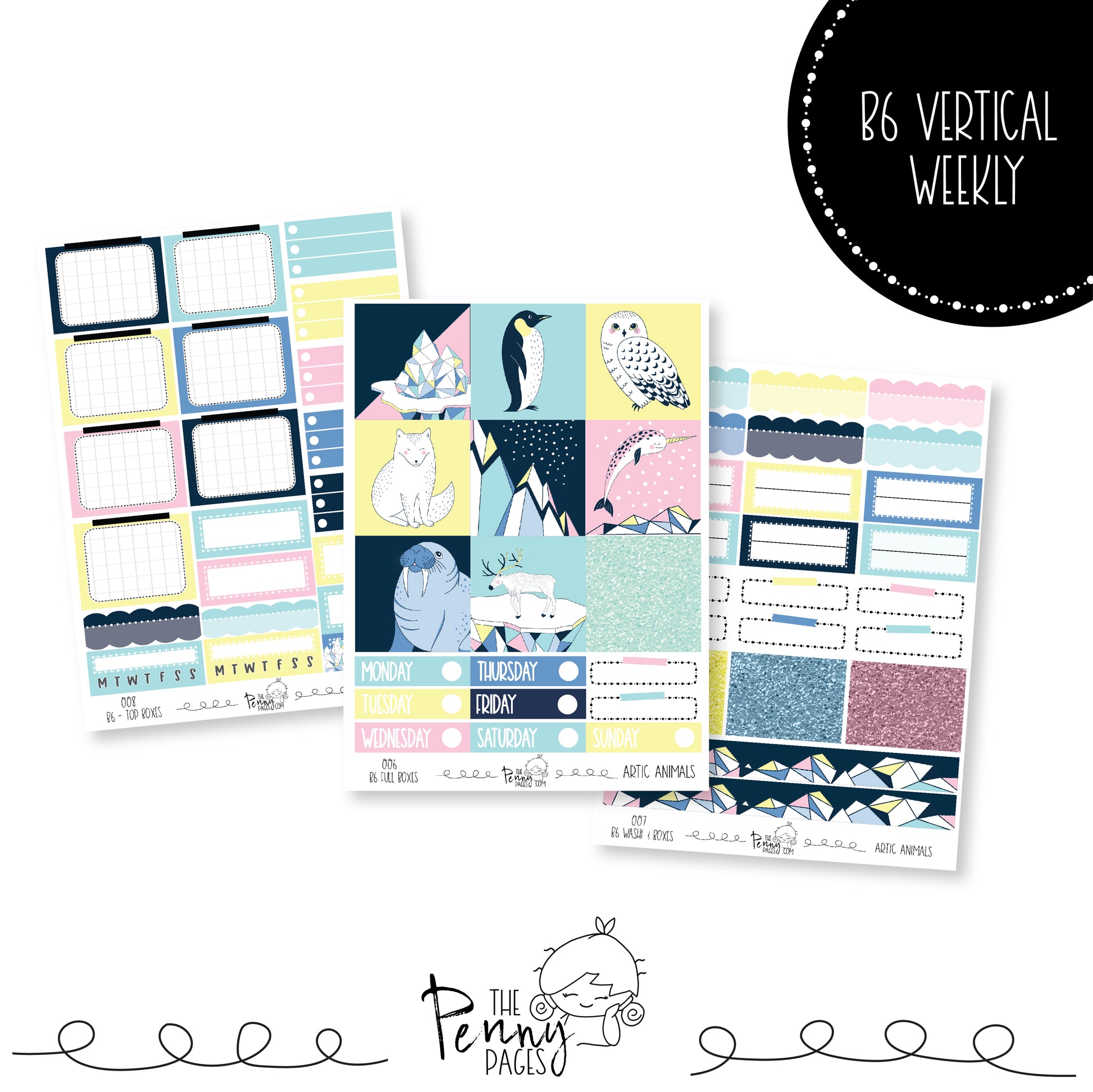 This weekly kit has been created using the Penny Pages B6 vertical weekly planner. The stickers all measure 1.5" wide and will fit in most " standard " planners.