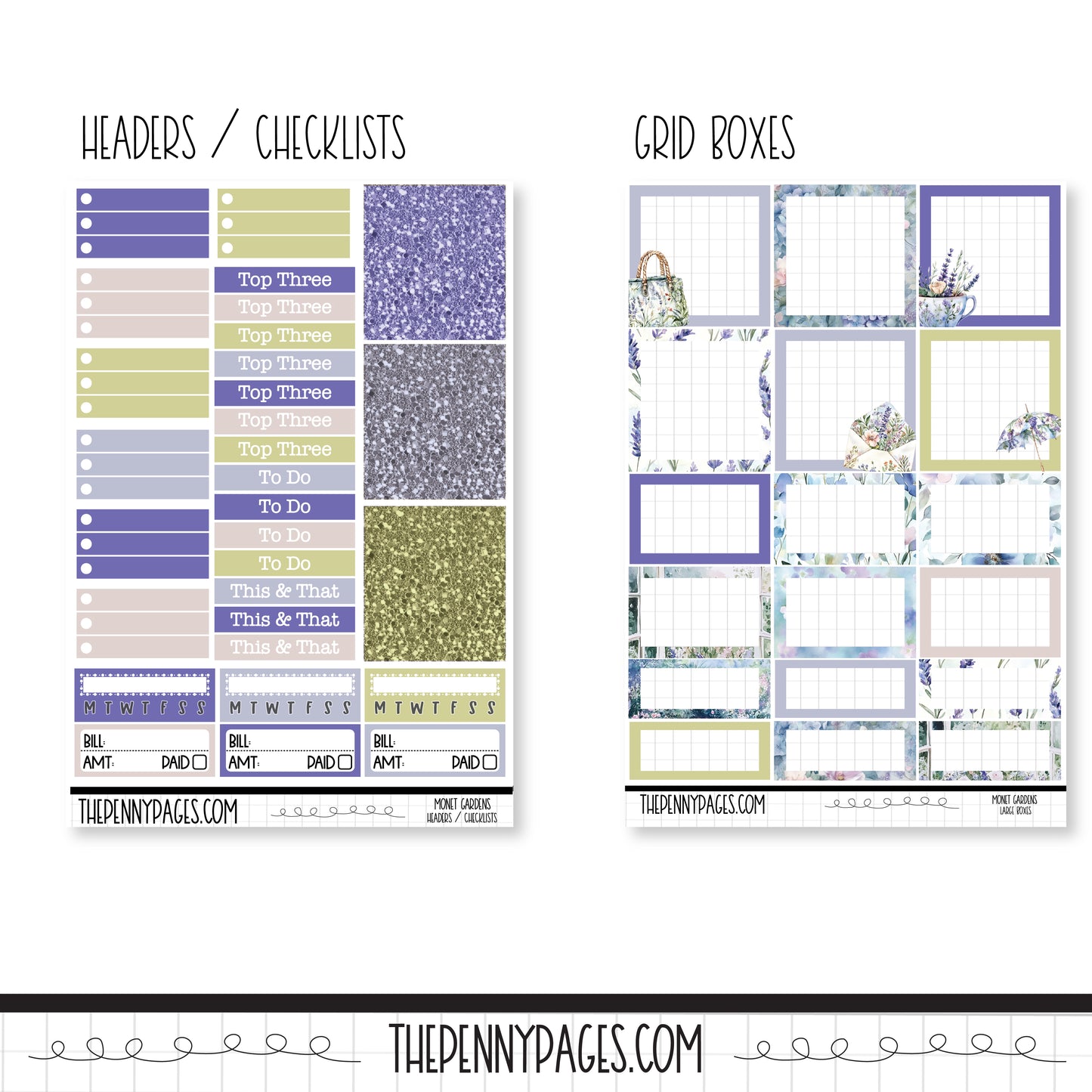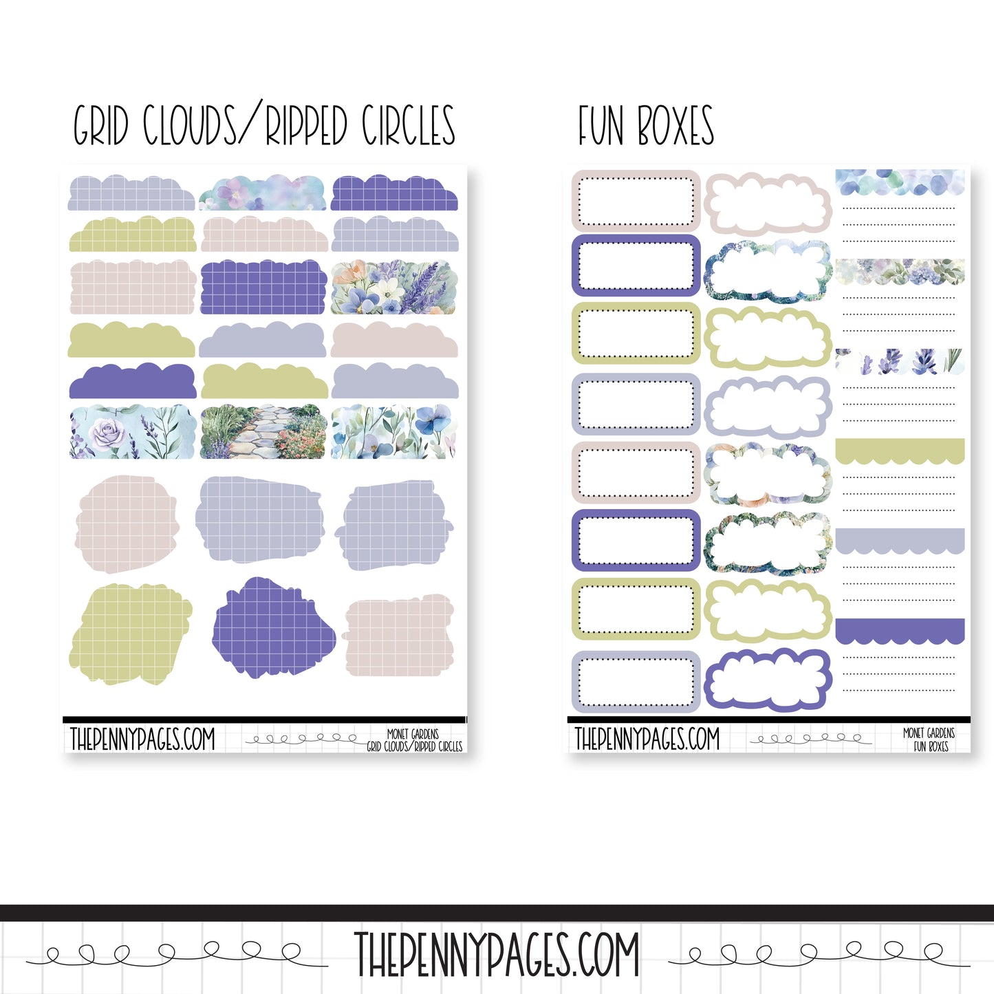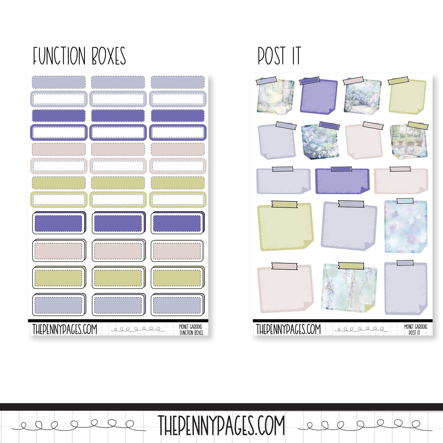 The square box full sheet are perfect for our B6 planners or our daily planners. The rectangle full boxes will fit perfectly in our A5 Wide vertical weekly planners or in our Daily planners.