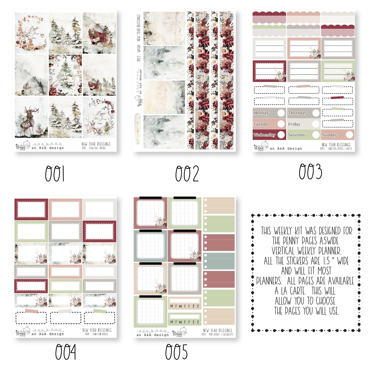 If you would like to purchase sheets a la carte, please look at the photos to see what stickers are found on each sheet.