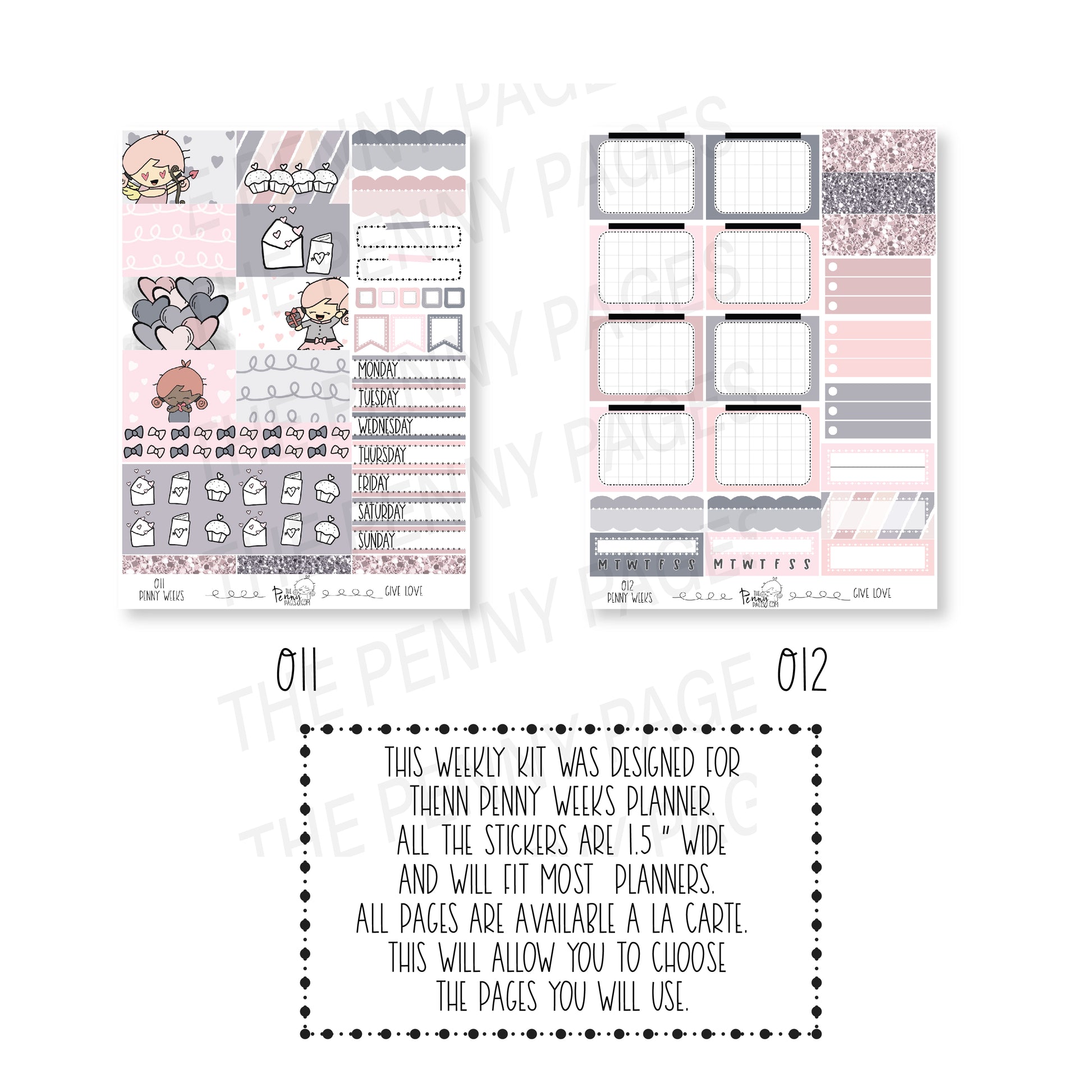 This weekly kit has been created using the Penny Pages Penny weeks weekly planner. The stickers all measure 1.5" wide and will fit in most " standard " planners.
