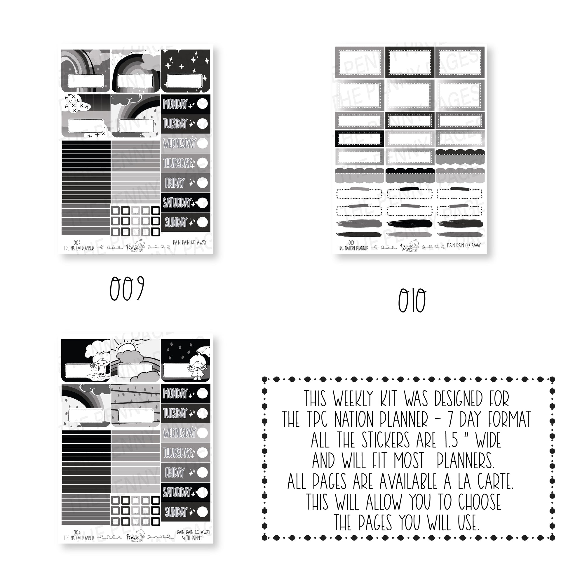If you would like to purchase sheets a la carte, please look at the photos to see what stickers are found on each sheet.