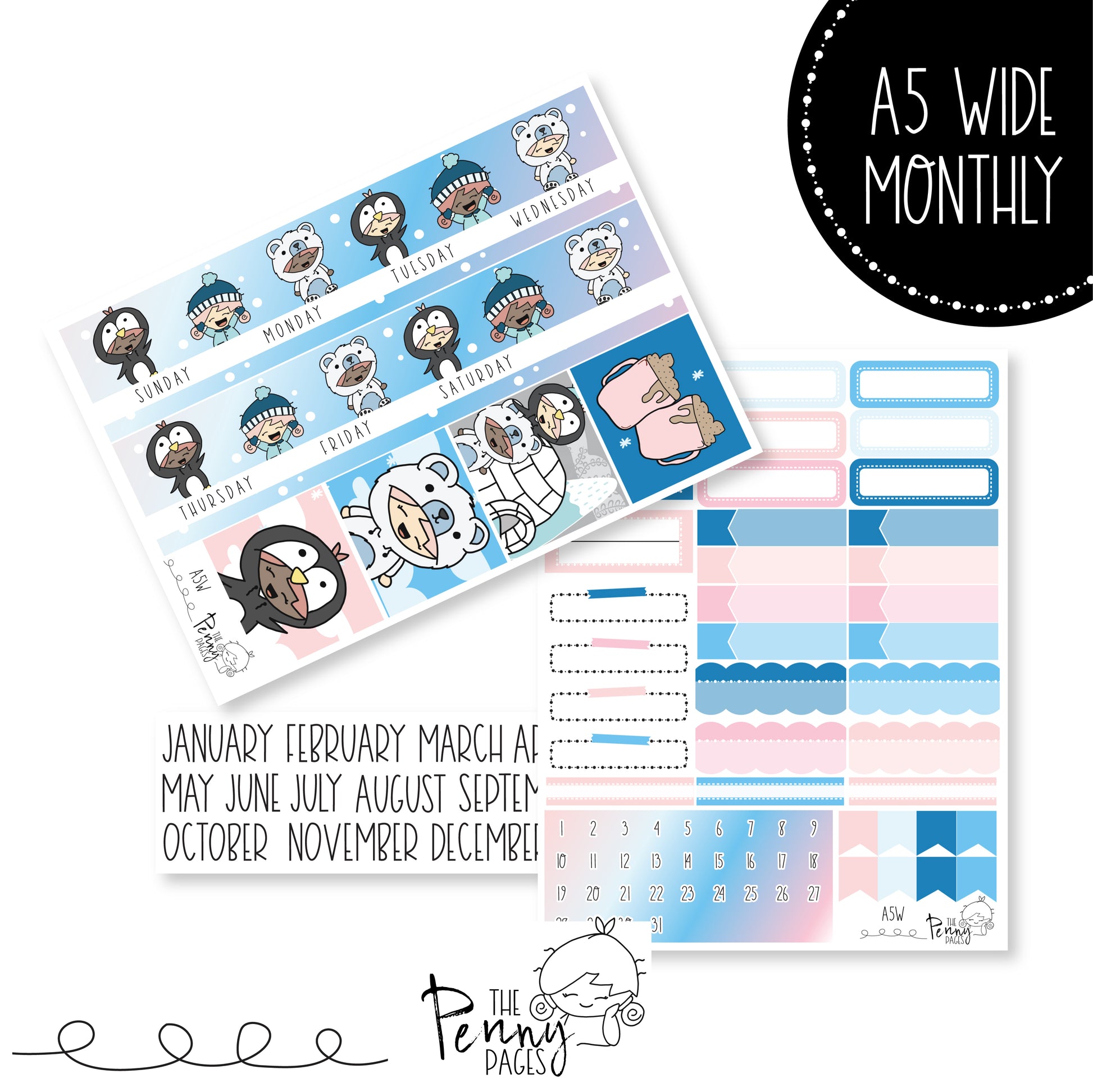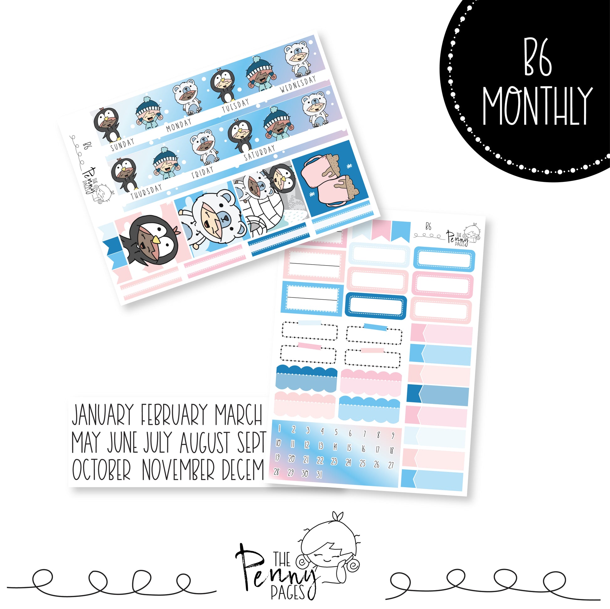 Monthly kit includes 2 full pages and 1 page for Month names