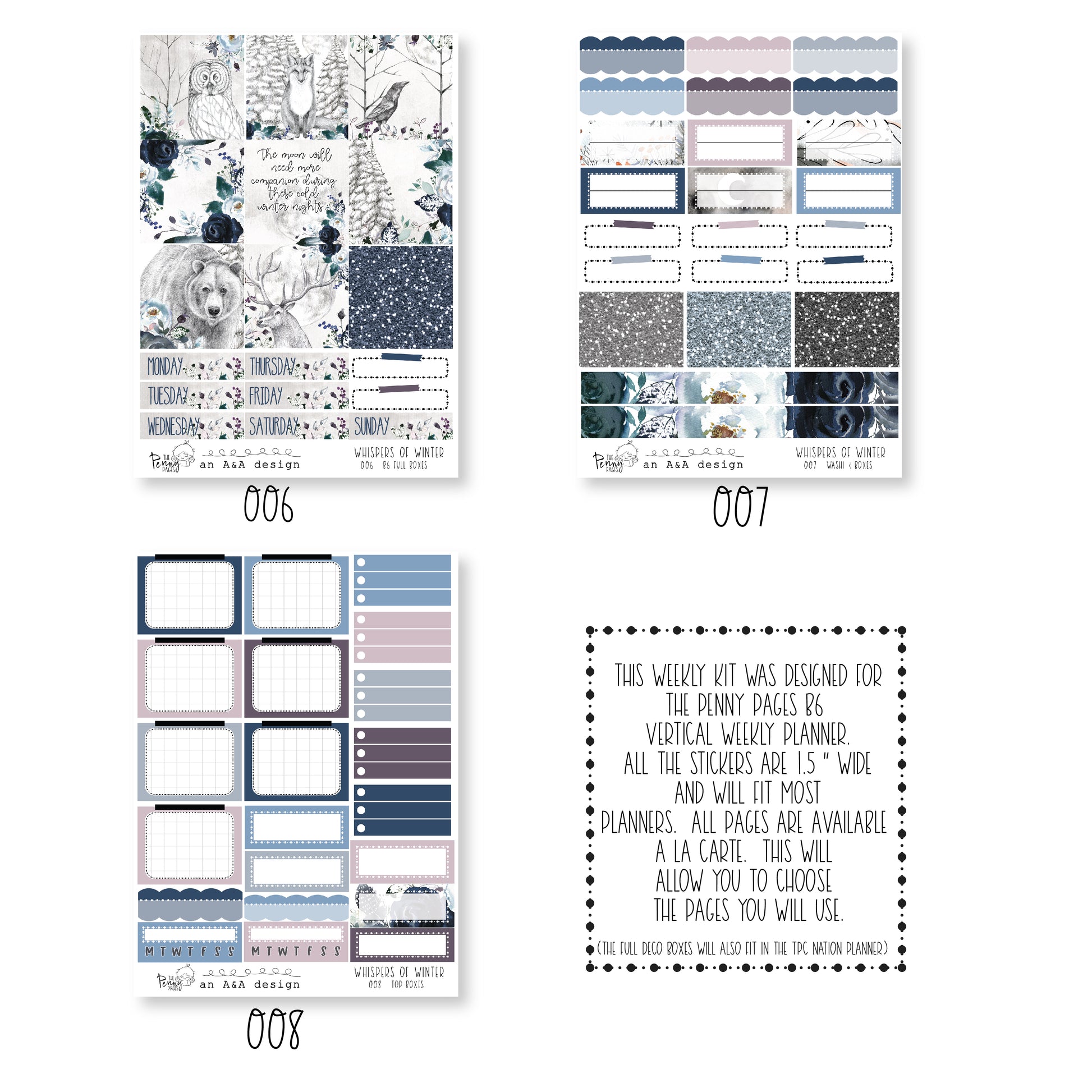 This weekly kit has been created using the Penny Pages B6 vertical weekly planner. The stickers all measure 1.5" wide and will fit in most " standard " planners.