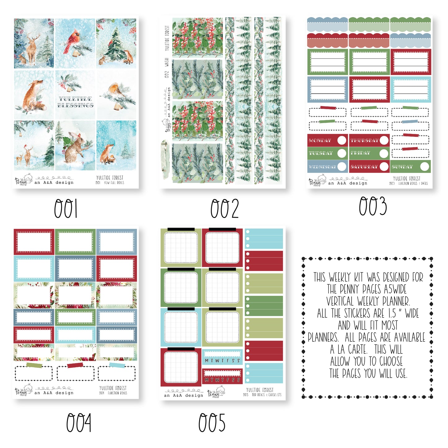If you would like to purchase sheets a la carte, please look at the photos to see what stickers are found on each sheet.